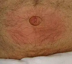 Incarcerated umbilical hernia with surrounding inflammation