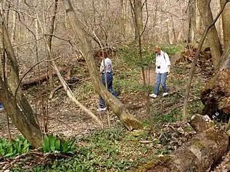 The herons roost in the eastern end with its tall sycamores. As you move towards the west, the woods become denser with beech, tulip poplars and maples. Here, there are a variety of smaller birds, including kinglets, wood thrushes, woodpeckers, and warblers.[4]