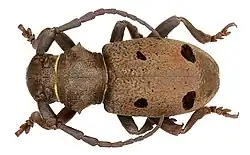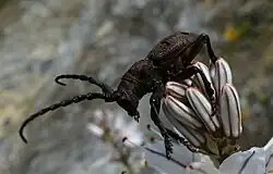 Herophila tristis is a species of beetle in the family Cerambycidae, they are also called longhorned beetles. It was described by Carl Linnaeus in 1767, originally under the genus Cerambyx. It is known from Italy, Romania, Austria, Bulgaria, Crete, Croatia, Sardinia, France, Greece, Serbia, Montenegro,Corsica, Sicily, Hungary, Slovenia, Albania, and Turkey. It feeds on Morus alba, Ficus carica, and Robinia pseudoacacia.[1] They live 2–3 years and are 13–26 mm long.[2] Larvae feed under the bark of a range of broad-leaved trees, mostly Ficus carica commonly known as fig trees. As an adult they hide in the day and come out in the dusk.[3]