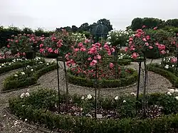 The Low German Rose Garden (German: Niederdeutscher Rosengarten) is one of the eight special gardens located within the central axis of the "Great Garden"(German: Großer Garten). It is situated along the main line connecting Herrenhausen Palace to the Great Fountain and is one of the thematic gardens created to reflect the historical evolution of garden design. Each of these eight gardens is enclosed by plant hedges, forming distinct garden chambers.