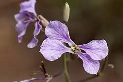 Hesperidanthus linearifolius is a perennial herb that produces a raceme of purple flowers, each with four spoon-shaped petals.[5] This tall, slender plant can grow to approximately 4 feet (1.2 meters) tall.[6] It has one or more erect stems that frequently branch near the top.[1]