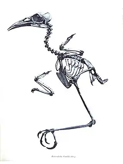 John Gould described the huia in 1836 as two species: Neomorpha acutirostris based on a female specimen, and N. crassirostris based on a male specimen—the epithet crassirostris derives from the Latin crassus, meaning "thick" or "heavy", and refers to the male's short bill.[7] In 1840, George Robert Gray proposed the name N. gouldii, arguing that neither of Gould's names was applicable to the species.[8] In 1850, Jean Cabanis replaced the name Neomorpha, which had been previously used for a cuckoo genus, with Heteralocha.[6] In 1888 Sir Walter Buller wrote: "I have deemed it more in accordance with the accepted rules of zoological nomenclature to adopt the first of the two names applied to the species by Mr Gould; and the name Neomorpha having been previously used in ornithology, it becomes necessary to adopt that of Heteralocha, proposed by Dr Cabanis for this form."[9]