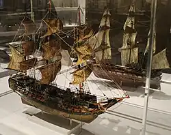 Ships have been a constant theme in his work throughout his career, ranging from small paintings to installations filling a church nave or an installation across an entire battle ship.[28] A major example of Locke's interest in navigational vessels in visual arts is his 2011 installation For Those in Peril on the Sea, acquired by the Pérez Art Museum Miami.[29]