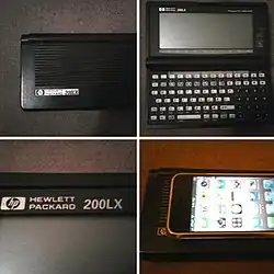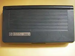 The HP 200LX Palmtop PC (F1060A, F1061A, F1216A), also known as project Felix, is a personal digital assistant introduced by Hewlett-Packard in August 1994.[1][2] It was often called a Palmtop PC, and it was notable that it was, with some minor exceptions, a DOS-compatible computer in a palmtop format, complete with a monochrome graphic display, QWERTY keyboard, serial port, and PCMCIA expansion slot. The abbreviation "LX" stood for "Lotus Expandable".[3]