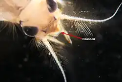 Hexagenia is similar in size and appearance to Pentagenia. The main difference is the rounded frontal process adjacent to the mandibular tusks in Hexagenia. In Pentagenia, this frontal process comes to a point.