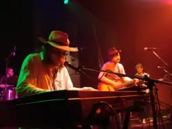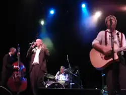 That year the band also released the singles "Rope" (which included an Alabama 3 Remix as the B-side) and the double A-side "Room Service/The Last Thing That I Do".[20] They appeared at various festivals including Glastonbury, Bestival, Cambridge Folk Festival, Rhythm Festival, Secret Garden Party, Larmer Tree, End Of The Road, Lovebox, Beautiful Days, Standon Calling, Latitude and SXSW.[4] Paul Tkachenko, who performed all brass instruments on "The Last Thing That I Do", also joined the band's touring line-up, playing accordion, banjo, keyboards, mandolin, sousaphone and vocals.[20]