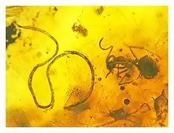- ^ Poinar, G. O. (2002). "First fossil record of nematode parasitism of ants; a 40 million year tale". Parasitology. 125 (5): 457–459. doi:10.1017/S0031182002002287. PMID 12458829. S2CID 41983613.