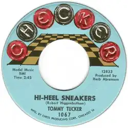"Hi-Heel Sneakers" (often also spelled "High Heel Sneakers") is a blues song written and recorded by Tommy Tucker in 1963. Blues writer Mary Katherine Aldin describes it as an uptempo twelve-bar blues, with "a spare, lilting musical framework", and a strong vocal.[2] The song's rhythmic approach has also been compared to that of Jimmy Reed.[3] Tucker's lyrics recall the time he spent as a Golden Gloves boxer in the 1950s: