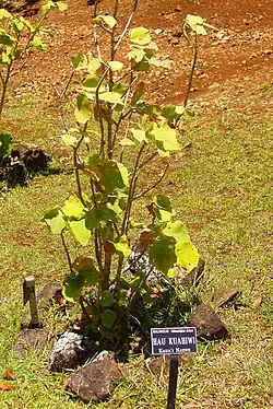 - Hibiscadelphus hualalaiensis - This species formerly occurred in North Kona. The last wild tree died in 1992,[1] but it survives in cultivation and trees have been outplanted in forest reserves.
