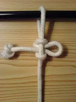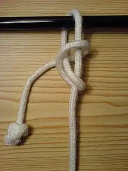 The highpoint hitch (or high post hitch[1]) is a type of knot used to attach a rope to an object. The main feature of the hitch is that it is very secure, yet if tied as a slipped knot it can be released quickly and easily with one pull, even after heavy loading. The highpoint hitch is tied in the same manner as a slipped buntline hitch until the final turn, where they diverge.[2]
