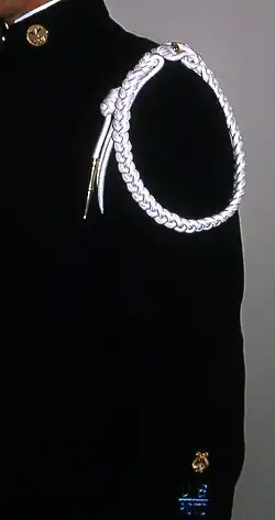 The Highty Tighties were presented with the white citation cord in 1936 for meritorious service in the Spanish–American War. According to Band legend, the cord was pinned on the Band commander backward by Eleanor Roosevelt. It has been worn with the braid on the outside ever since. The official university story is that President Burrus presented the citation cord to the band.