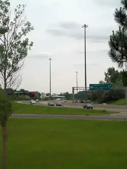 On November 30, 1990, the Northfield Drive interchange was fully opened to traffic, eliminating a traffic signal from the northern end of the Conestoga Parkway.[18] The speed limit on the parkway was lowered from 100 km/h (62 mph) to 90 km/h (56 mph) on January 10, 1994 following numerous cross-median collisions.[19] In 1998, during the mass downloading of provincial highways to lower levels of government, the majority of Highway 86, from the Northfield Drive interchange to Amberley, was decommissioned.[20] The Regional Municipality of Waterloo subsequently designated the section north from Waterloo to Elmira as Regional Road 85. Consequently, the remaining section of Highway 86, which exclusively followed the Conestoga Parkway, was renumbered as Highway 85 during the spring of 2003 to align the numbers and aid navigation.[21][22]