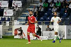 In December 2018, he was called up for the 2019 AFC Asian Cup squad,[54] and played in all three group stage games.[55] On 17 January 2019, during the last game against North Korea, he scored a volley in the 65th minute thanks to a cross by Mohamad Haidar to put Lebanon in the lead.[56] In the seventh minute of added time, he scored a second volley ending the encounter in a 4–1 win and giving Lebanon their first ever win in the Asian Cup.[56]