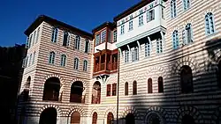 It is regarded as the historical Serbian monastery on Mount Athos, traditionally inhabited by Serbian Orthodox monks.[5][6][7][8][9] The Mother of God through her Icon of the Three Hands (Trojeručica) is considered the monastery's abbess.[10] The monastery contains about 45 working monks.
