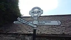 The oldest record which names the village is dated 963 AD.[3] It records a grant of land in Sherburn-in-Elmet and nearby settlements by King Eadgar to Aelsac as a reward for goods and services. The land granted in Hillam is described as, "on Hillum tyesra oxena gang" meaning "in Hillam two oxgangs".[4] An oxgang was related to the amount of land an ox could plough in a year and is roughly equated to 15 acres.