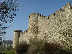 - Town fortifications, south side, eastern and western parts of the crenellated girding wall built about 1300 and raised in the early 16th century.