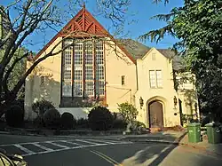 Hillside first opened in the Fall of 1901 on the nearby southwest corner of Le Roy Avenue and Virginia Street.[3][4] This first Hillside, constructed under the auspices of the newly formed Hillside Club,[5] for the Berkeley Public Schools, was one of the hundreds of structures that were destroyed by the 1923 Berkeley fire. The school was temporarily relocated, from late 1923 until August 1926, to the University School (1414 Walnut Street) while a new school building was constructed.