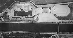 Plans for development of the lido were agreed in 1932[5] and the lido opened on 24 July 1935.[6] The architect for the lido was Joseph Parkin.[7] The pool originally used seawater, converting later to freshwater, and the lido design included two large fountains which have been retained but are no longer used.[8][9] The Main Pool and changing facilities were designed for the use of 768 adults and 180 children with accommodation for around 1000 spectators. In 1936 the Lido was visited by the British diving team from 1936 Summer Olympics who gave a demonstration on 31 August[10] During World War 2 the main pool was closed to the general public and was given over to the use of the various military units in the area.[11] Between 1946 and 1951 a miniature railway ran along the lido site.[12] In 1974 the Lido was used as a set for the Bernie's Holiday Camp scene in the film Tommy.[13] Later in the 70s the lido's diving platforms were removed.[14] In 1995 the Lido lent its name to the Vulcan Software management simulation game Hillsea Lido.[15]