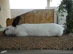 The Himalayan rabbit is a small breed of rabbit with similar markings to the Californian rabbit.[1] The body is white with colored points, recognized colors are black, blue, chocolate, and lilac.