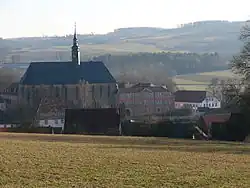 The Gothic abbey church of St. Mary was built at the highest point within the village and towers over the village and the rest of the abbey complex. According to the rules of the order, the relatively small church had a simple exterior and instead of a tower it had a ridge turret.