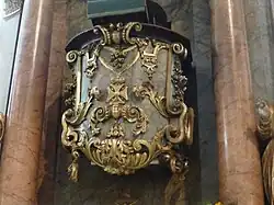 Starting in 1698, the northern Italian architect Antonio della Porta fundamentally rebuilt the church.[11] The remodeling, which was carried out due to the new Lutheran principles of form, can be classified in the Baroque and Rococo styles. In a local expression, the incipient Margraviate style is evident. The windows were widened, the original Gothic Wimperg at the main portal was removed, the Margravial coat of arms took the place of a figure of the Virgin Mary, and an Olivet group at the outer chancel was removed. The flat ceiling of the nave was vaulted, the two-story gallery was built (it was the first church gallery where the columns are continuous from the floor to the second floor), and the floor was leveled. In 1718 the pulpit altar was made.