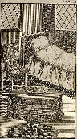 - ^ Feldmann (1704): "Bettstatt.. nur.. ein kleines Grüfftlein gleich ob eine Katze darinn gelegen";[36] though Feldmann's book earlier says the sprite leaves a depression in the Deckbette as if a "small dog has lain in it".[37]