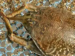 A small crustacean. Carapace ovate, more long than wide; neotype measurements: 25.1 mm × 22.5 mm.[3] Females tends to have larger bodies than males; on the southern coast of Java, the carapace length is 17.6–34.9 mm in females or 18.1–27.7 in males.[4]
