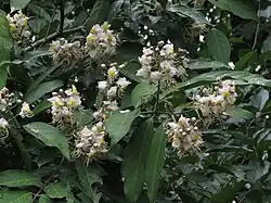 Hiptage benghalensis, often simply called hiptage, is a perennial, evergreen liana native to India, Southeast Asia, Taiwan, and the Philippines.[1][2] Its habitat is variable[3] and prefers climates ranging from warm temperate to tropical. In Hawaii, where H. benghalensis is considered a weed, as it is in Australia, Mauritius and Réunion, it grows from sea level to 1,000 m (3,281 ft).[4] H. benghalensis is cultivated for its white-pink scented flowers.