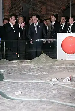 The museum began major renovations in 2014. The East Wing reopened in 2017, featuring more interactive displays and replacing the model of the city with a version that uses projection mapping to demonstrate the bomb blast's effects.[2] When the East Wing reopened, the Main Hall was closed for seismic retrofitting until 25 April 2019.[3] The exhibits were also renovated during this time to focus more on victim's belongings, and are now divided into four sections: an introductory exhibit in the East Wing, "Reality of the Atomic Bombing" and a gallery in the Main Building, "Dangers of Nuclear Weapons" in the East Wing, and "Hiroshima History" in the East Wing.[4]
