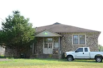 Hirst-Mathew Hall is a historic school building in Bruno, Arkansas. It is located in a complex included several other school buildings south of Arkansas Highway 235, between County Roads 5008 and 5010. It is a single-story stone structure, with a gable-on-hip roof that has exposed rafter ends in the Craftsman style. The main (north-facing) facade has a centered gable-roof porch supported by four columns set on a raised concrete base. The east facade has 14 windows, placed asymmetrically in groups of six, three and five. The west facade has 12 windows in two groups of six. It was built in 1929 as part of the Bruno Agricultural School, and originally housed classrooms. The schools had been founded in 1921 under the Smith–Hughes Act. When it was listed on the National Register of Historic Places in 1992, it was in use as a textile factory.[2]