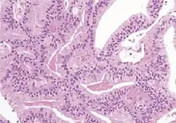 - ^ a b c d e f Yaskiv, Oksana; Cao, Dengfeng; Humphrey, Peter A. (2010). "Microcystic Adenocarcinoma of the Prostate: A Variant of Pseudohyperplastic and Atrophic Patterns". The American Journal of Surgical Pathology. 34 (4): 556–561. doi:10.1097/PAS.0b013e3181d2a549. ISSN 0147-5185. PMID 20216381. S2CID 24149412.