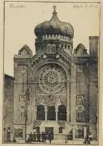 In 1909, B'nai Abraham retained the services of contractor Samuel Lashner & Co. to construct a new building at a cost of $28,000.[8] It was designed by architect Charles W. Bolton & Co. in the style of Byzantine Revival. Bolton and his firm had designed B'nai Reuben, built on South Sixth Street in 1905. They took as inspiration for B'nai Abraham's new building the Pike Street Synagogue (Congregation Sons of Israel Kalwarie) built in 1903 and 1904 at 13-15 Pike Street in Manhattan, and designed by the architect Alfred E. Badt. Demolition of the old building began on May 10, 1909[9] and the new building was dedicated April 1910.