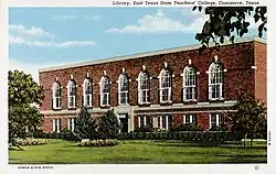 On November 20, 1924, President Randolph B. Binnion resigned the presidency to become provost at George Peabody College for Teachers in Nashville, Tennessee, and the board of regents selected Samuel H. Whitley as his successor. Whitley was the Dean of the Faculty at ETSTC and a professor of mathematics at the time of his selection, prior to which he had been a high school principal in Corsicana and, briefly, Assistant State Superintendent.[8] Whitley was inaugurated as ETSTC's third president on January 16, 1926, the same day as the dedication of the Education Building, the first campus building to be paid for by state funds.[9][10] The building was constructed with an appropriation of $285,000 from the Texas Legislature and was built by the Jones Construction Company of San Antonio;[11] it featured a 2,500-seat auditorium and originally included 35 classrooms. It was later renamed the Arthur C. Ferguson Social Sciences Building and, as of 1993, was still one of the most-used buildings on campus.[12] By that year, all of the buildings constructed during the presidencies of Mayo and Binnion had been demolished and replaced, leaving the Ferguson Social Sciences Building as the oldest structure still standing on campus.[13]