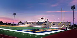 Facing a housing shortage as enrollment surged, Whitley turned to makeshift solutions, acquiring 20 prefabricated army dwellings from Camp Maxey in Paris for student housing.[60] Despite these and an additional 54 "hutments" provided by the federal government, approximately 600 prospective students were turned away due to lack of housing in 1946–47. Academic buildings were also needed, and during the end of his tenure Whitley had plans for new dormitories, a new women's gymnasium, a 10,000-seat stadium, and a swimming pool.[61] A drive to fund the new stadium, which was conceived as a memorial for the ETSTC students who died in World War II, was organized by local businessman and Ex-Students Association president Noble Arthur, who asked each faculty member to donate $75 to the effort.[62]
