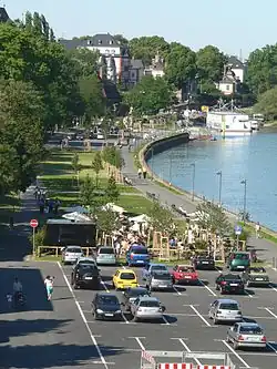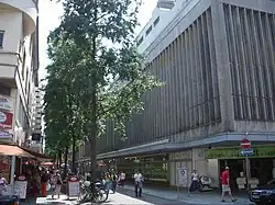 The conversion of a section of Königsteiner Strasse between Bolongarostrasse and Hostatostrasse into a pedestrian zone in 1990 was unable to halt the downward trend in Höchst's retail trade. Many specialist stores moved away or gave up, vacant business premises and stores selling low-price goods have characterized the image of Höchst's shopping streets ever since. For this reason, the City of Frankfurt decided in 2006 to support Höchst's urban development with twenty million euros over the next ten years in order to make Höchst an attractive residential and business location again.[46]