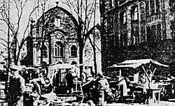 The National Socialists quickly began expropriating Höchst's Jewish population. The owners of the large city department store Schiff, which opened on Königsteiner Straße in 1929, were forced to sell; the department store was sold to the Hertie Group via an intermediate owner. The shoe factory R. & W. Nathan OHG, located opposite the station, was also "aryanized" and half of its shares were acquired by Dresdner Bank. The company was renamed ADA-ADA-Schuh AG and the owners were forced to emigrate. During the November pogroms of 1938, the synagogue built in 1905 on the market square was burnt down by SA men; the fire department merely protected surrounding houses from the fire. An air raid shelter was built in place of the synagogue. A memorial plaque on its west façade today commemorates the event.[39]