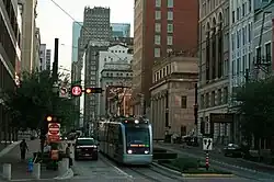 Houston City Streetway Company (HCSC) began operating construction and operation of animal-powered streetcar lines in 1874. The first streetcar service began in 1868, but these early attempts to establish service in Houston were commercial failures. HCSC developed service in the business district, then centered on Congress Avenue and Main Street, though one the first four lines extended as fair south as the Fairgrounds. Another line offered service on Congress to the International & Great Northern Railroad depot. Suburban subdivisions were developed near the Fairgrounds around the same time, and residential developers used the emerging streetcar lines to promote these new subdivisions. Lots sales in these more remote areas, however, did not sell quickly in the 1870s. An upstart company, the Bayou City Street Railway, built its main line further south on Texas Avenue in 1883. Later the same year, William Sinclair and Henry MacGregor acquired both streetcar companies and consolidated their operations.[38] From 1874 until 1891 all of the transit service was operated using mule-driven streetcars, when electric streetcars began to be implemented in their place.[39]