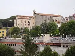 In order to repopulate the fief, Marcantonio Colonna on December 26, 1574, issued a patent in which he promised exemption for four years from all royal and personal service to anyone who wished to become his vassal in the land of Marino, in exchange only for an oath of loyalty and obedience.[62] The appeal probably did not fall on deaf ears, as the population increased considerably over the next sixty years, even exceeding a thousand inhabitants and necessitating the construction of a new, imposing and capacious parish church such as the basilica of St. Barnabas. Following a disastrous fire that had destroyed the town of Rocca di Papa in March 1577, the people of Marino housed their neighbors from Rocca di Papa while waiting for their town to be rebuilt.[62] In the meantime from the urbanistic point of view the current Corso Trieste (called in the seventeenth century "Strada Larga") began to take shape, since Cardinal Giovanni Battista Castagna (a friend of Marcantonio Colonna, later to become Pope Urban VII) had a palace built there around 1583 with a remarkable facade enriched with peperino friezes. In April 1580 a community of Augustinian religious settled at the church of Santa Maria delle Grazie, which until then had belonged to the wealthy and ancient Confraternity of the Gonfalone of Marino.[66]
