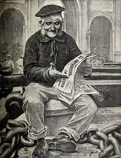 The educated press or periodicals were printed with the permission of the Council of Castile and were subject to ecclesiastical censorship.[16] They could be bought in bookstores or street stalls or be read in cafés, and they were sold by the blind, who had a monopoly on their distribution.[2]