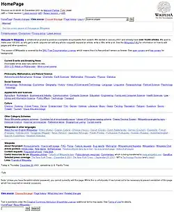 - Nostalgia Wikipedia – a snapshot of Wikipedia from 20 December 2001, running a later version of MediaWiki for security reasons but using a skin that looks like the software of the time