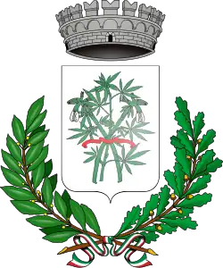 Nevertheless, from the 17th century onwards, the hemp cultivation area in Campania steadily increased to include the southern part of the modern-day Province of Caserta, and most of the former Province of Naples, including the sides of Mount Vesuvius.[8] Furthermore, according to an economic census compiled under King Joachim-Napoleon, during the French rule of the Kingdom of Naples between 1806 and 1815, hemp fields were mainly located in the fertile Volturno river basin, between the comuni of Capua, Caserta, Maddaloni, and Aversa; while significant exports of hemp from Naples towards the rest of Europe were recorded around 1840.[8] The legacy of the once-flourishing industry of hemp cultivation and processing in the area is attested in the toponyms of several streets and towns around Naples,[8] while the comuni of Arzano and San Marco Evangelista even show a hemp plant in their coats of arms.[60][61]