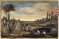 After significant public protests, King Charles II of Anjou decreed the closure and reclamation of several maceration sites around Naples in 1300 and 1306,[8] even though the Royal coffers significantly benefited from renting state-owned wetlands and canals for the retting of both flax and hemp.[35] Similar reclamation projects followed during the Angevin and Aragonese periods, until King Alfonso I of Aragon permanently moved the retting sites to the shallow Agnano lake, about 8 km (4.97 mi) west of Naples.[8][58] Moreover, the Miano-Agnano highway, known as Via dei Canapi (i.e. Hemp street), was constructed to facilitate the transport of hemp between the fields North of Naples and the maceration sites at the lake, while also avoiding population centers.[8] Despite two temporary bans, the first one during the plague of 1656 and the second one following the death of one of the sons of Viceroy Gaspar de Bracamonte from an infection in Pozzuoli in 1663, retting activities continued in the Phlegraean Fields until the second half of the 19th century, when they became unprofitable.[8] Subsequently, the Agnano lake was decontaminated and drained between 1866 and 1870, with its surface at the time spanning between 90 ha (0.9 km2; 0.3 sq mi) and 130 ha (1.3 km2; 0.5 sq mi) within a volcanic crater about 2.07 km (1.29 mi) wide.[8][58][59] This land reclamation project was carried out to remove the rotting fumes, as well as to prevent further outbreaks of the mosquito-borne malaria by reducing the local habitat of the Anopheles mosquito.[8]