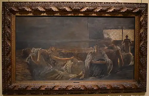 In 2023, a scientific research paper was published regarding the detection of a significant quantity of cannabis pollen inside some of the hydriai, as well as of oil traces that were compatible with hemp oil.[12] As the analyzed organic content of the vases was not consistent with the main Mediterranean ritual organic matters (e.g. honey, olive oil, and wine), it could not be attributed to a possible local heroic cult; while the fact that the pollen mainly came from male cannabis plants ruled out the use of said plants for intoxicating purposes.[12]