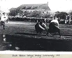 Women's hockey developed separately from men's hockey. Women do not seem to have played hockey widely before the modern era. Women's hockey was first played at British Universities and schools, and the first club, Molesey Ladies Hockey Club, was founded in 1887.[5] The first national association was the Irish Ladies Hockey Union in 1894, and though rebuffed by the Hockey Association, women's hockey grew rapidly around the world. The women's University Match between the University of Oxford and University of Cambridge first took place in 1895,[6] making it the oldest varsity match in the world for women.