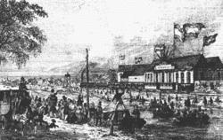 An ambitious army officer, W. A. Bake, launched the first plan to build a railroad in the Netherlands shortly after Britain's first railroad opened. He planned to build a railway connecting Amsterdam to Cologne (Germany), passing through Arnhem. However, unlike most European countries, the Netherlands already had an effective manner of transporting goods and passengers between cities, the horse-drawn boat or trekschuit. The Netherlands had historically been a trading nation, partly due to the many rivers and canals running through the country which allowed for effective transport. Many people thus questioned the need for a railroad.[1] Moreover, the existing shipping industry formed a powerful lobby against the railroad, which managed to sway public opinion.[2] The result was that when Bake tried to raise funds for the railroad, he failed completely.[2] He was never to return to his plans.