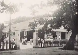 The government undertook a propaganda campaign to convince Micronesians that Japanese and Micronesian people were the same race, and the authorities encouraged the Marshallese to assimilate into Japanese culture.[157] In 1915, the military administration instituted a three-year public school system that provided education the Japanese language and gradually replaced the missionary schools.[158] Students were forbidden to speak Marshallese in the schools and could receive corporal punishment for not speaking Japanese.[159] More than half of school lessons were devoted to Japanese language and cultural instruction.[160] The government implemented a system of using boats to transport students from smaller and more remote islands to schools on the larger islands, and school books and materials were free.[161] By 1935, public school attendance was mandatory for all children within range of a school.[162]