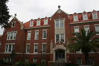 A number of the University of Florida's buildings are historically significant. The Campus Historic District comprises numerous buildings and encompasses approximately 650 acres (2.6 km2).[37] Two buildings outside the historic district, the old WRUF radio station (now the university police station) and Norman Hall, are also listed on the historic register.[38] The buildings listed on the U.S. National Register of Historic Places for their architectural or historic significance are: