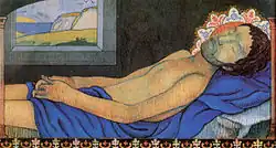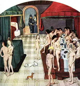 In the Middle Ages, moral theology distinguished four types of nudity: nuditas naturalis, the natural state of the human being; nuditas temporalis, an artificial state imposed by transience, generally linked to poverty; nuditas virtualis, as a symbol of virtue and innocence; and nuditas criminalis, linked to lust and vanity. Another frequent element of nudity in medieval art—especially in the Apocalypses of the Beatus—was the representation of the dead, as a symbol of the stripping of everything earthly.[44]