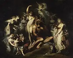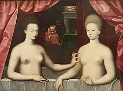 Renaissance art recovered the classical nude as an exemplification of ideal beauty, both physical and moral. The nude was the perfect pretext for any composition, from the most naturalistic to the most symbolic, the latter expressed through multiple allegories and personifications. At times, the Renaissance representation of the human body was that of nudity for nudity's sake, a kind of art for art's sake that often denaturalized the very subject of the painting, whether religious or mythological.[67] In the Renaissance the nude ceased to be a source of shame and, in contrast, acquired a new heroic or even sacred character (sacra nuditas).[68] According to Louis Réau (Iconography of Christian Art, 1955), "Renaissance artists considered the representation of the human body in its triumphant nudity as the primary object of the plastic arts".[68]