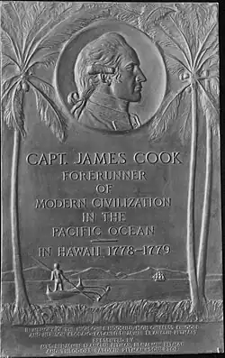 The Pitman Tablet was sculpted by his great-grandson Theodore Baldwin Pitman in honor of the sesquicentennial of Captain James Cook's arrival in Hawaii and the Pitman family of Hawaii.